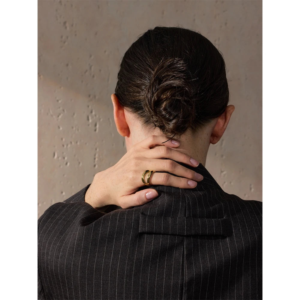 Yhpup 6789# Stainless Steel Metal Double Layer Geometric Cast High Quality Ring Water Resistant Texture Fashion Daily Jewelry